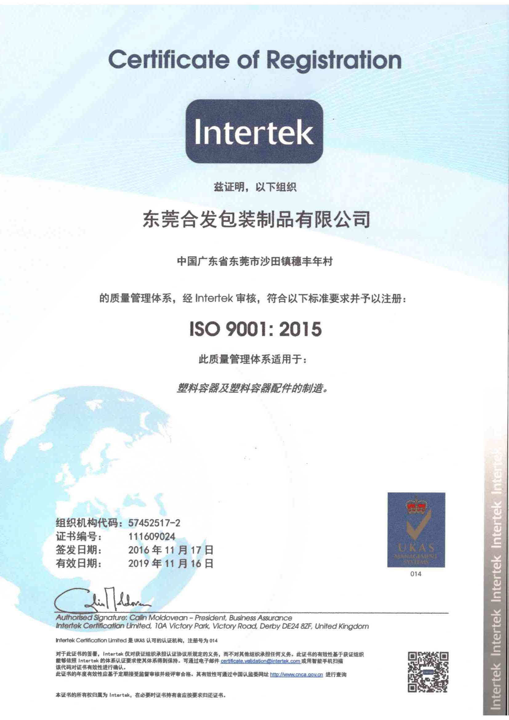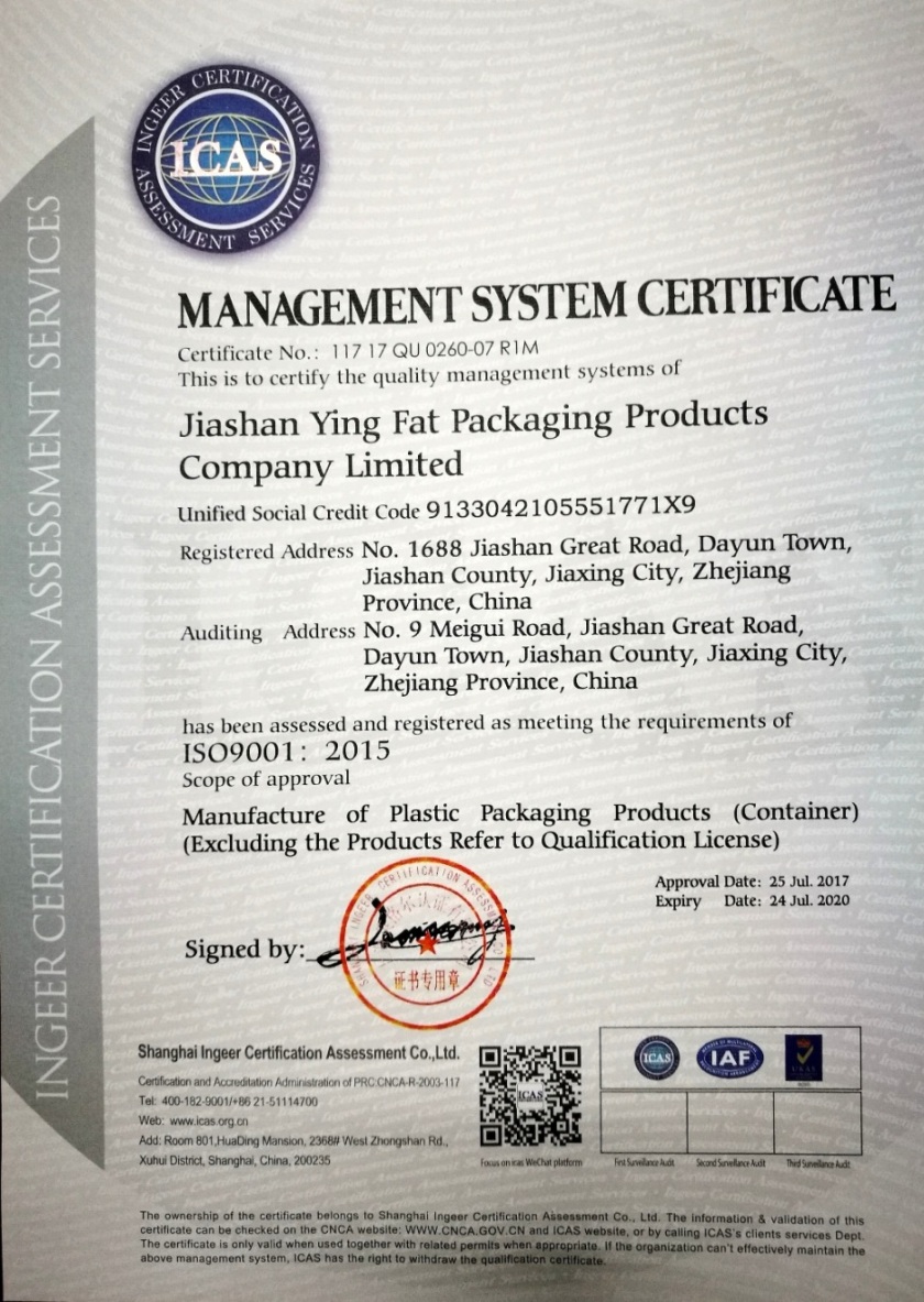Early in 2002, we obtained ISO 9001, the year 2000 version of International Quality Permit. In 2016, the company upgraded ISO9001, the 2015 version of International Quality Permit. In the same year, the company gained ISO1400, the 2015 version of International Environment Management Permit and as National Food by-products Production Permit. The products of the company meet the national standard as well as the European ROHS.